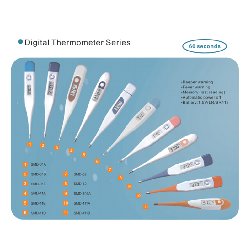 | СМД-01А | 15,5х6,5 мм | 127х18х10 мм | 10,5 г | 32,0 ℃-42,0 ℃ 89,6F-107,6F | ±0,1 ℃ (35,5 ℃ -42,0 ℃)/ ±0,2F (95,9F-107,6"F) ±0,2 ℃ (<35,5 ℃) ±0,4F (< 95,9F) | 0,1 ℃/ 0,1F | 60 секунд | ||