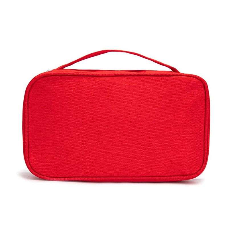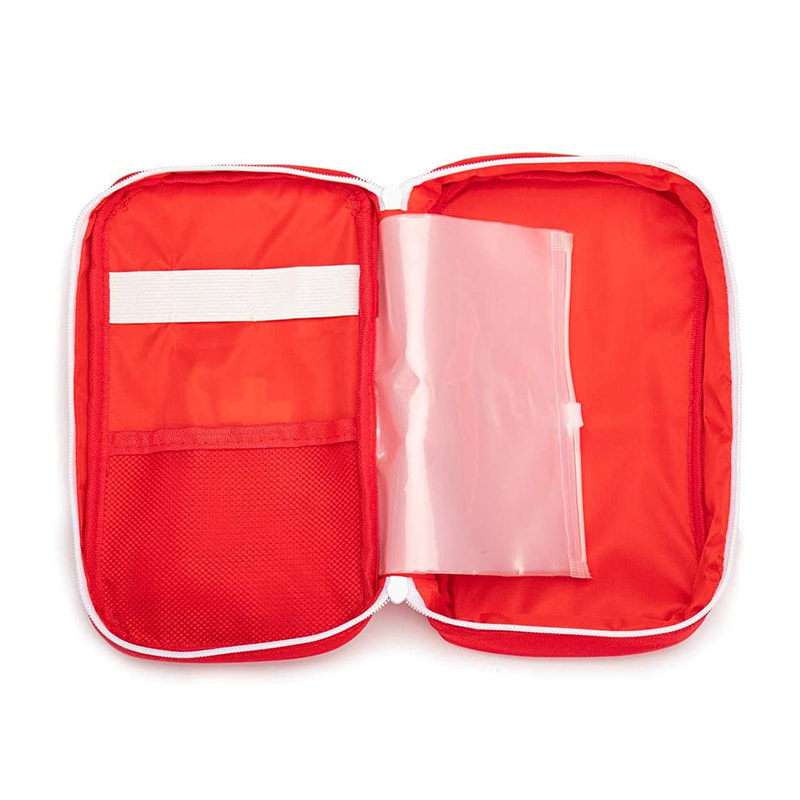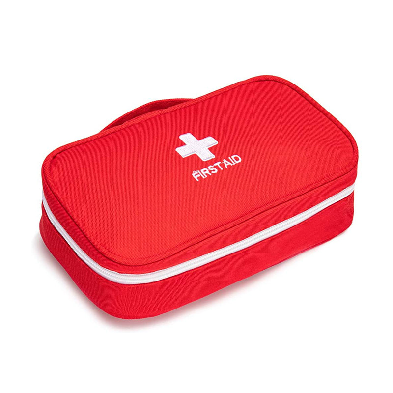 Червона сумка для екстреної допомоги з ручкою дуже зручно носити з собою, куди б не піти.