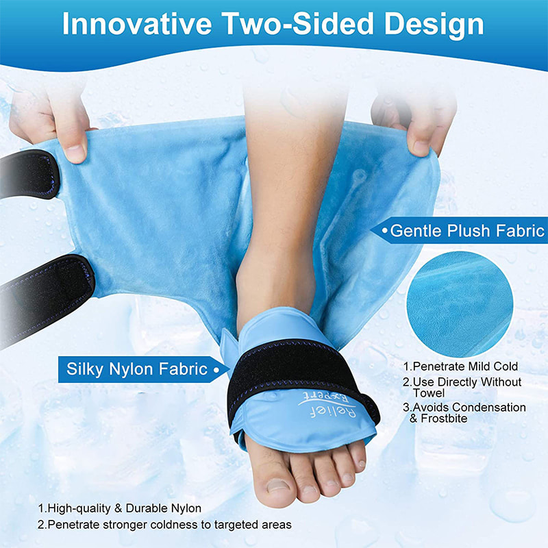 Пакет із льодом для щиколотки з повним покриттям 360 може обернути щиколотку та стопу в усіх напрямках, що може ефективно полегшити біль у м’язах після тренування або набряк після травми.