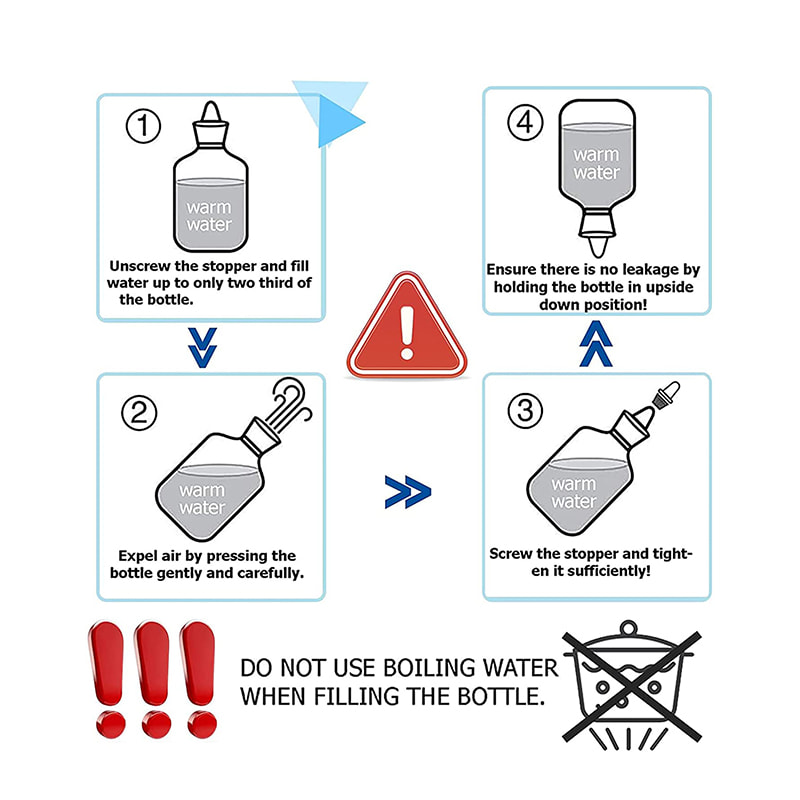 Візьміться за шийку пляшки з грілкою. Повільно залийте воду на 2/3.