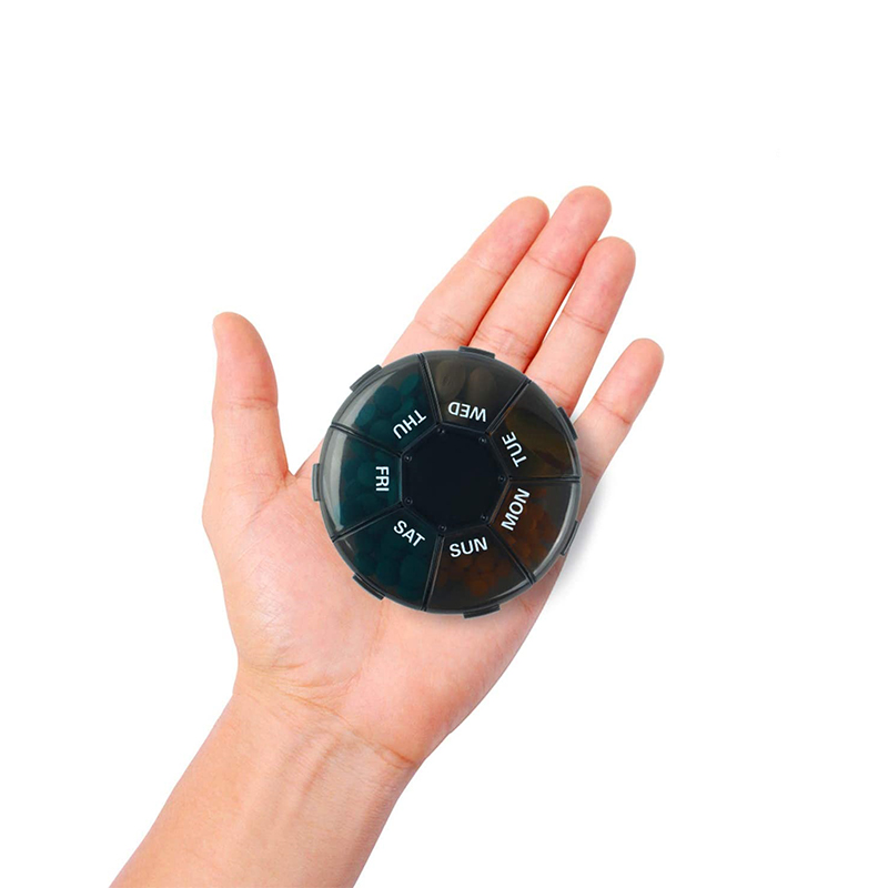 Органайзер для таблеток дорожніх розмірів компактний, зручний для використання під час виходу.