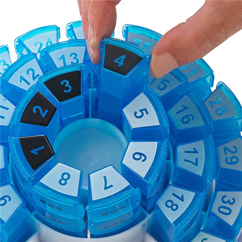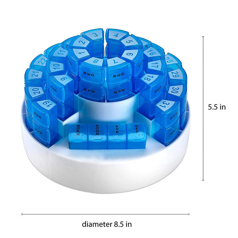 Круглий дизайн також дозволяє легко розташувати органайзер для таблеток на стільниці, а також дозволяє щодня брати ліки з собою, куди б ви не пішли!