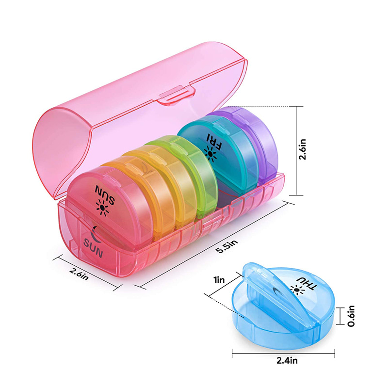 Зовнішня міцна коробка-контейнер і харчові коробки 7 щоденних таблеток забезпечують безпеку ваших ліків.