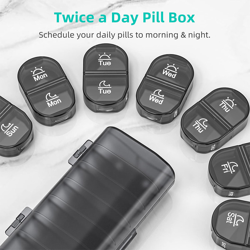 У кожному відсіку є ранкова та вечірня частини. Ця коробка для таблеток допомагає відстежувати ваші таблетки та добавки.