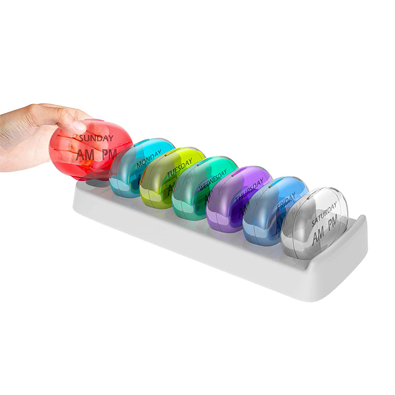 Відсіки цього унікального планувальника таблеток закручуються зверху та знизу одне на одне.