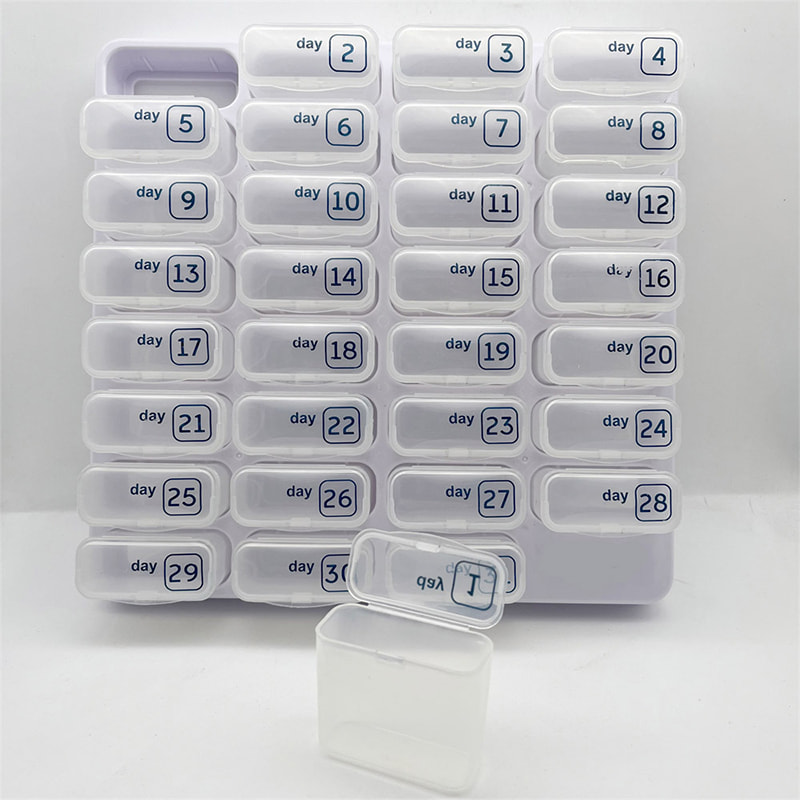 Таблетки легко поміщаються в кишені, гаманці, сумки для книг тощо. Кожне щоденне відділення для таблеток вміщує до 8 таблеток або вітамінів середнього розміру.
