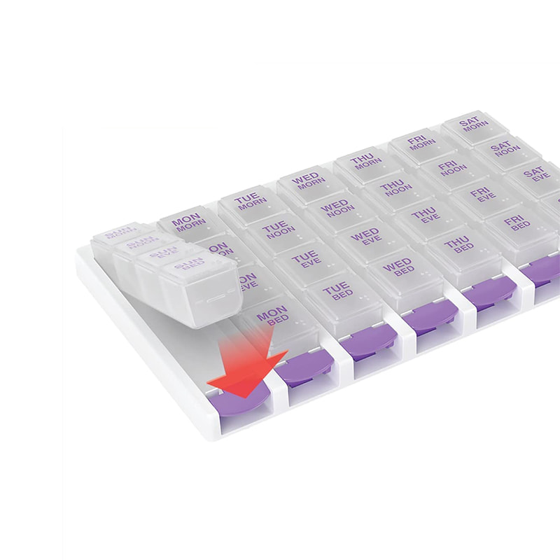 ЛЕГКЕ ВИКОРИСТАННЯ: кнопки та заокруглені нижні частини дозволяють легко відкривати органайзер для таблеток і легко діставати ліки