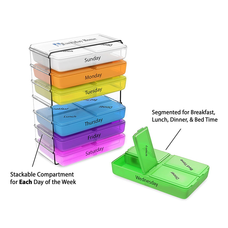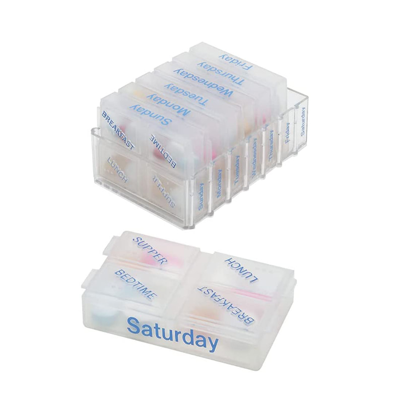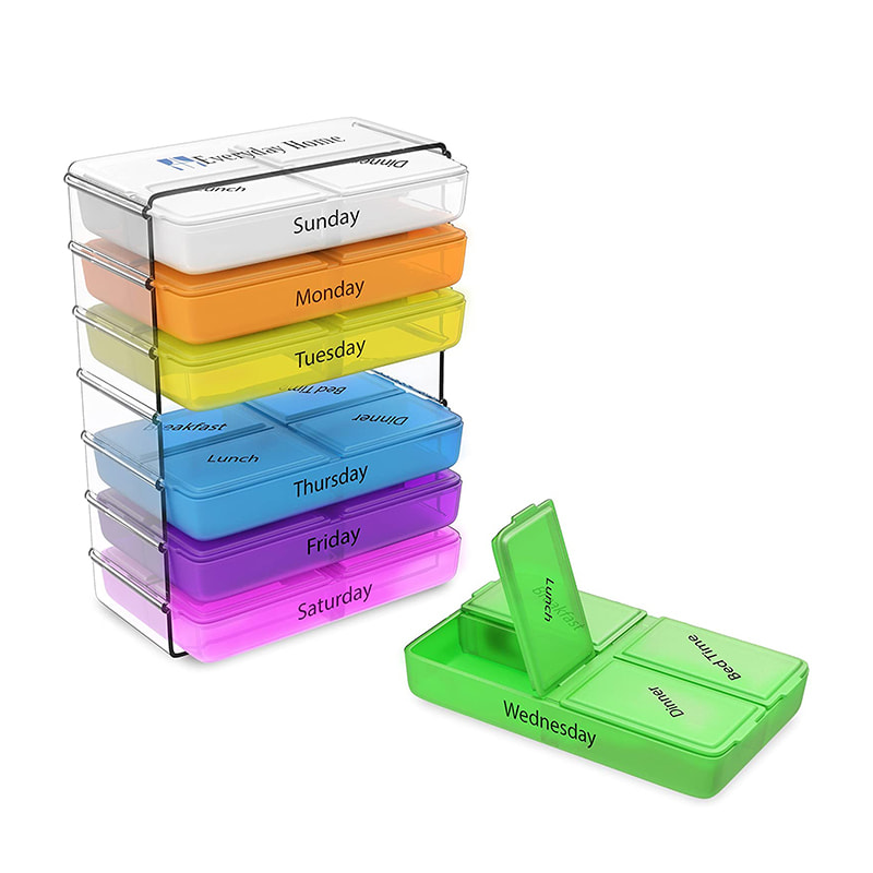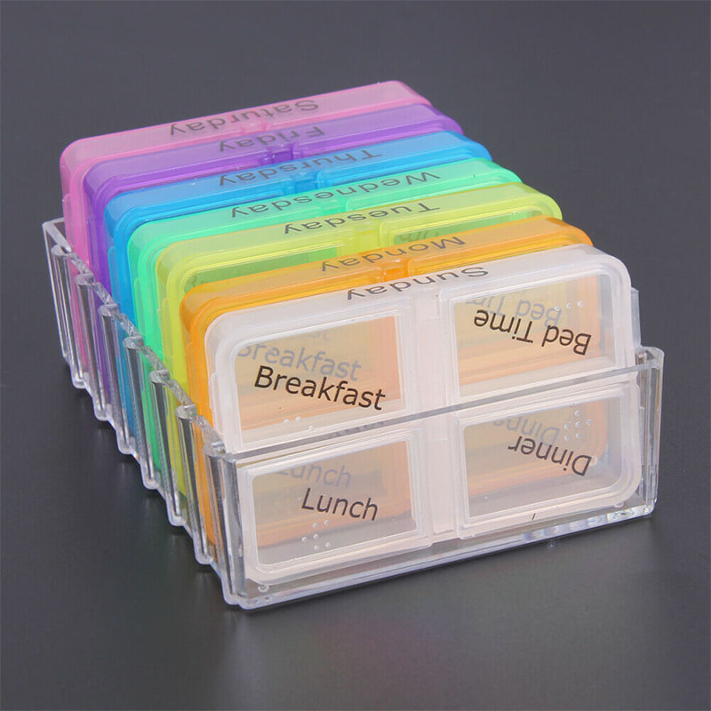 Цей щоденний контейнер для таблеток має великі етикетки, які легко читати, у кожному відділенні, тож ви завжди можете легко знайти ліки.