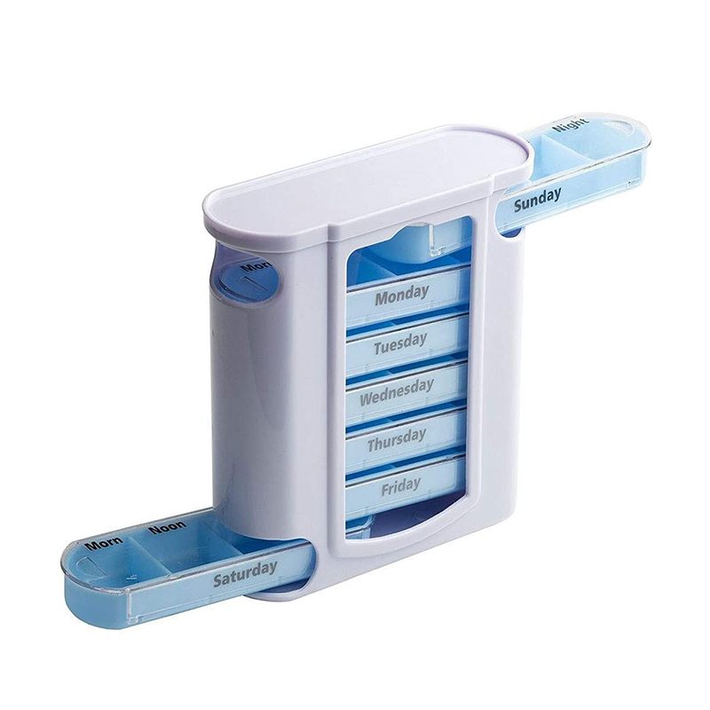 Цей унікальний щотижневий органайзер для таблеток на 7 днів до ранку після полудня призначений для зберігання величезної кількості таблеток і вітамінів усіх розмірів і форм в одному місці.