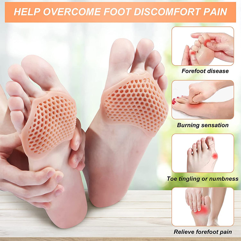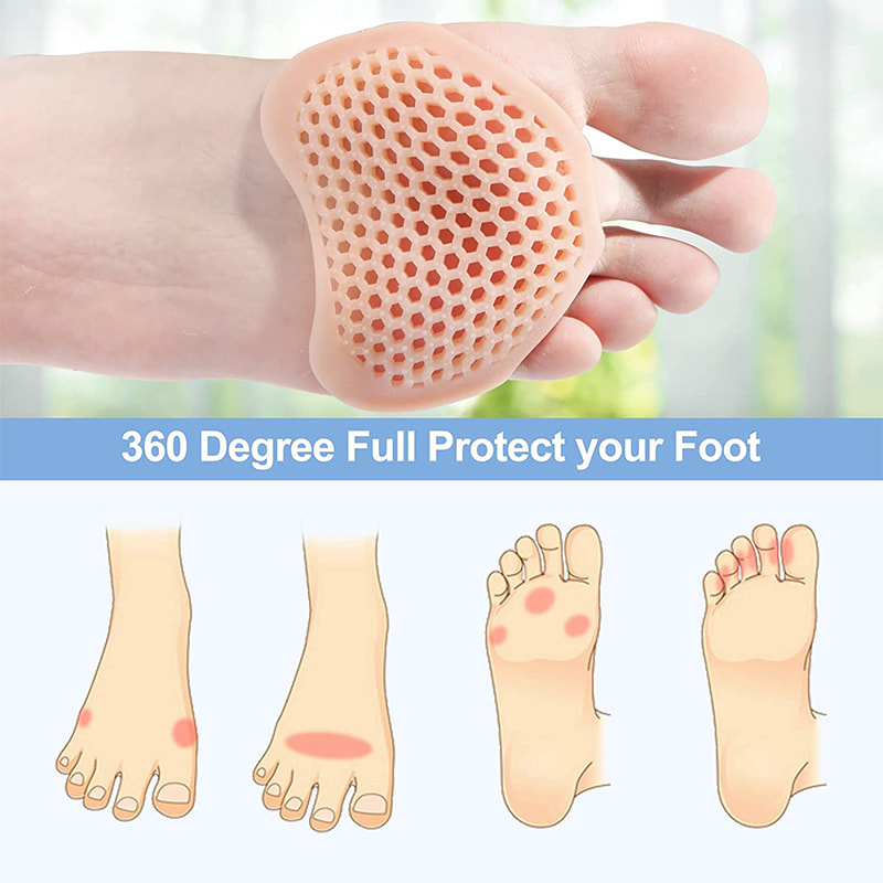 Стільниковий дизайн плеснової подушечки робить продукт добре дихаючим, а 3 окремі отвори дозволяють цій подушечці для ніг краще обгортати ваші ноги, дизайн не ковзає.